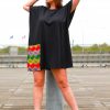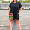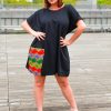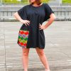 “Kaya” is a modern kaftan dress with African flair. The deep black, softly flowing fabric provides an elegant base, while colorful kente accents on the pocket and neckline add color and cultural depth to the look. Whether as a subtle everyday statement or a stylish choice for special occasions, this dress exudes confidence, ease, and style.