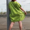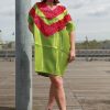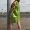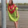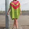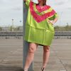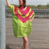 Caftan dress in lime green with pink sequins – striking, modern, and comfortable. The oversized cut creates a stylish look. One size – ideal for sizes 42–48.