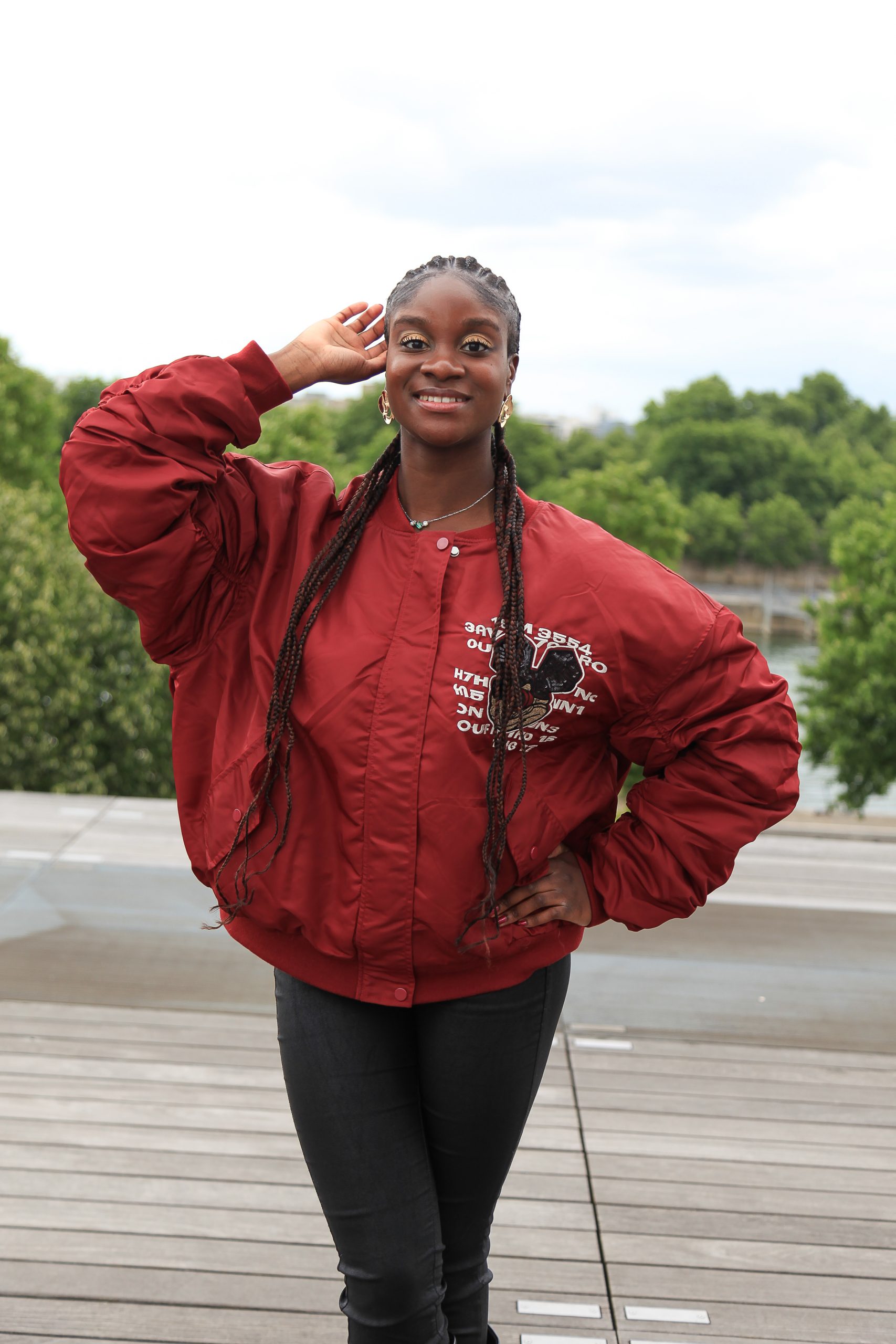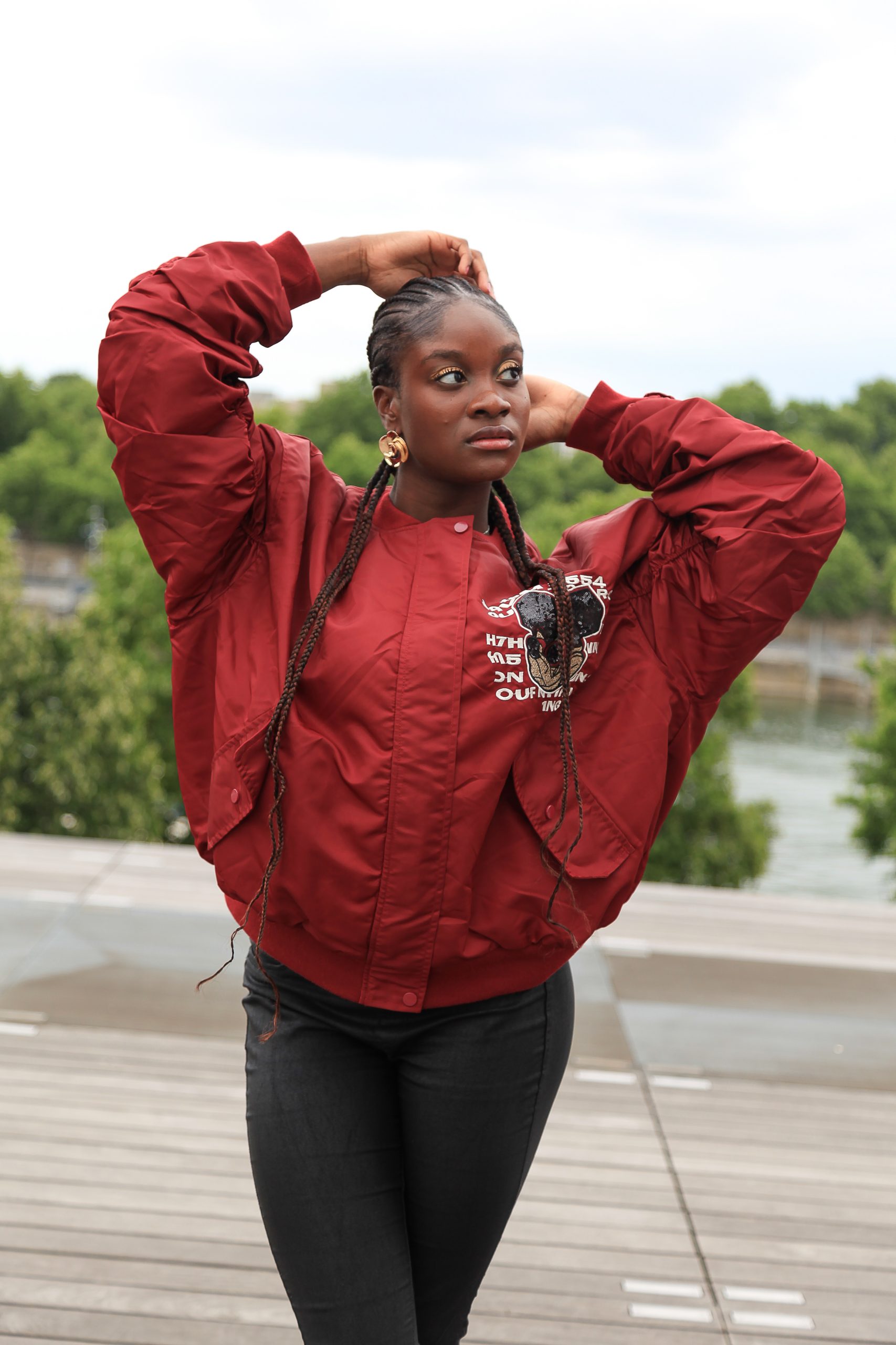 Oversized Bomberjacke – Bordeaux mit Cartoon-Print
