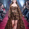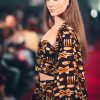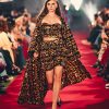 Der lange Kimono, das Bustier-Top und die High-Waist-Shorts zeigen den ikonischen Sikatí Signature-Print in Gold-Braun und wurden auf der Hamburger Fashion Show präsentiert.